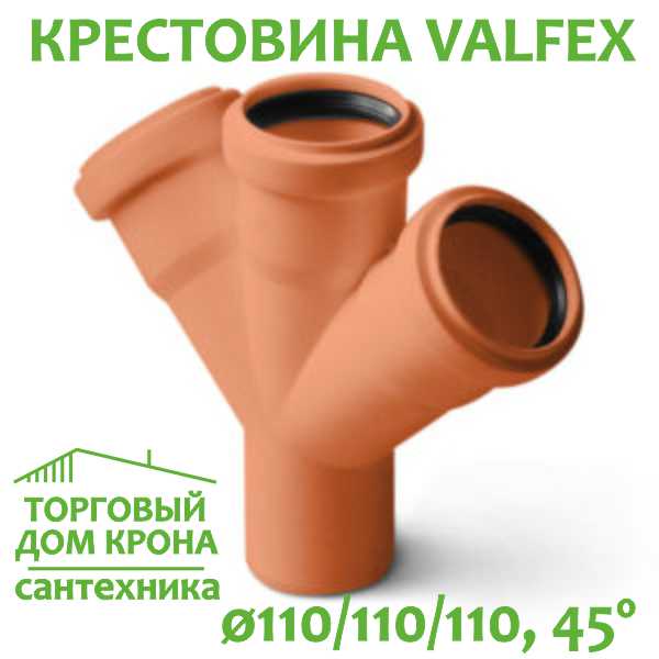 Крестовина VALFEX ø110/110/110, 45º — это надежный выбор для создания эффективной и безопасной канализационной системы.