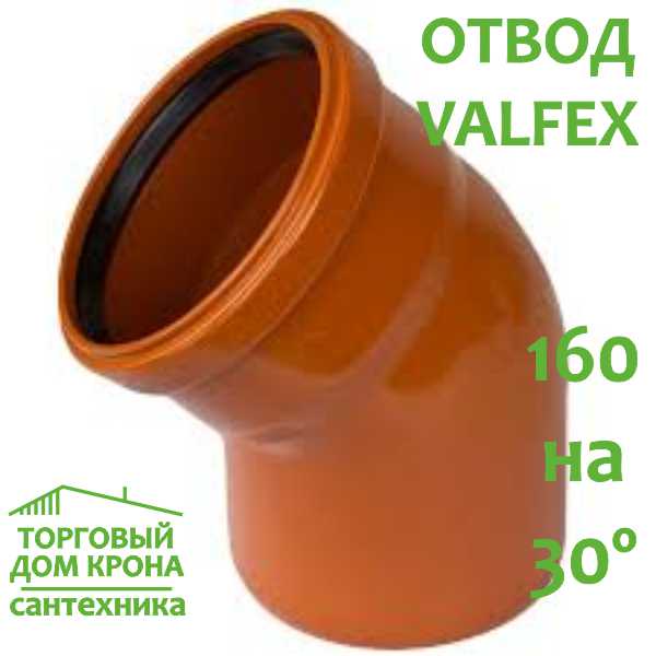 Вашему вниманию представляется отвод для наружной канализации VALFEX ø160, 30º — надежное и долговечное решение для вашей системы водоотведения. Этот отвод изготовлен из высококачественного материала, который обеспечивает превосходную устойчивость к коррозии и низкие температуры, гарантируя длительный срок службы.